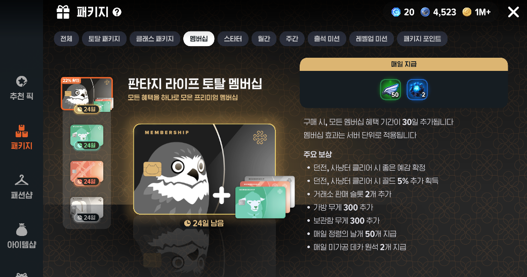 💡 멤버십 + 모험가 패스만 구입해도 약 3만 원 대로 충분합니다!