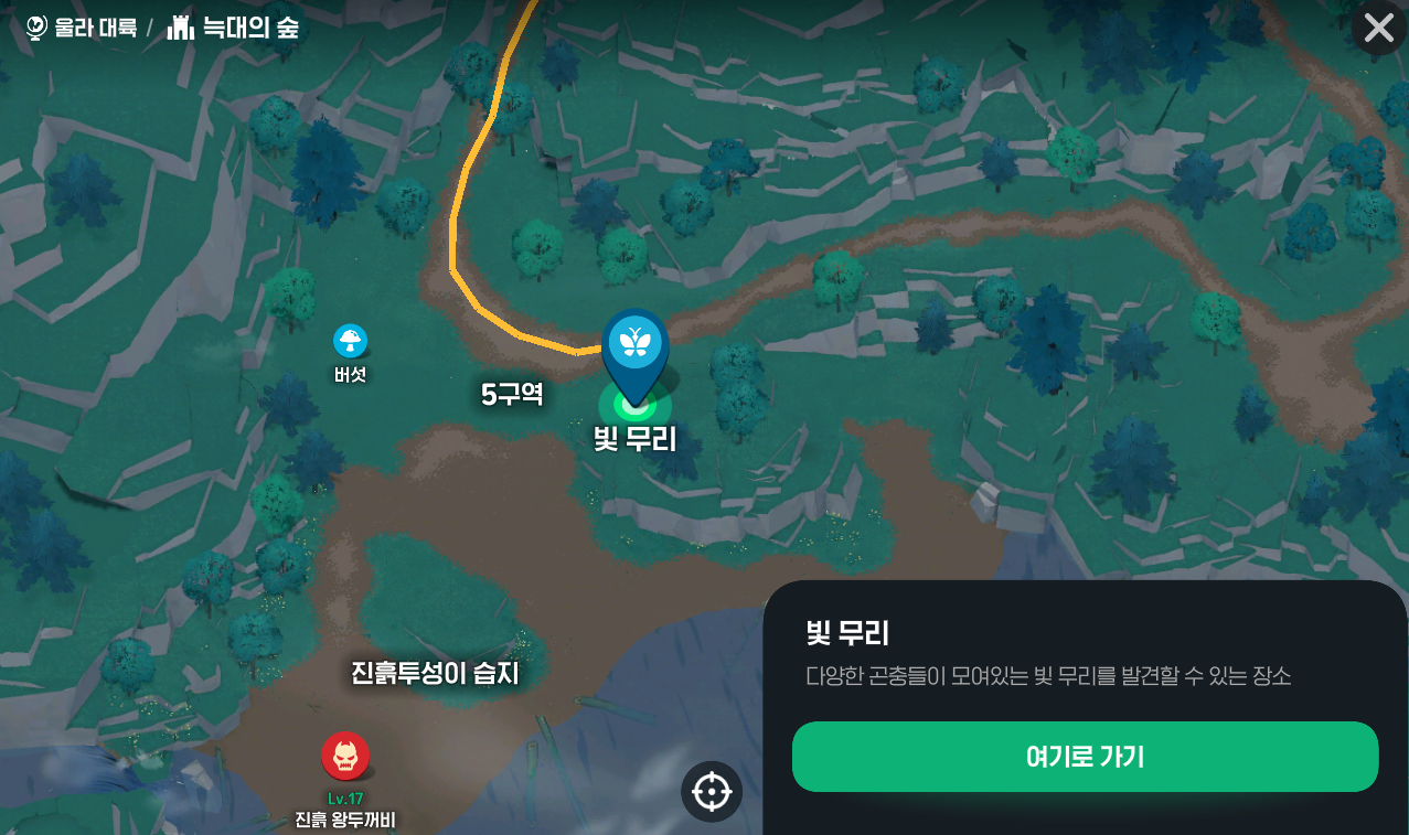 왼쪽 위 지도를 누르고 이동해서 늑대의 숲을