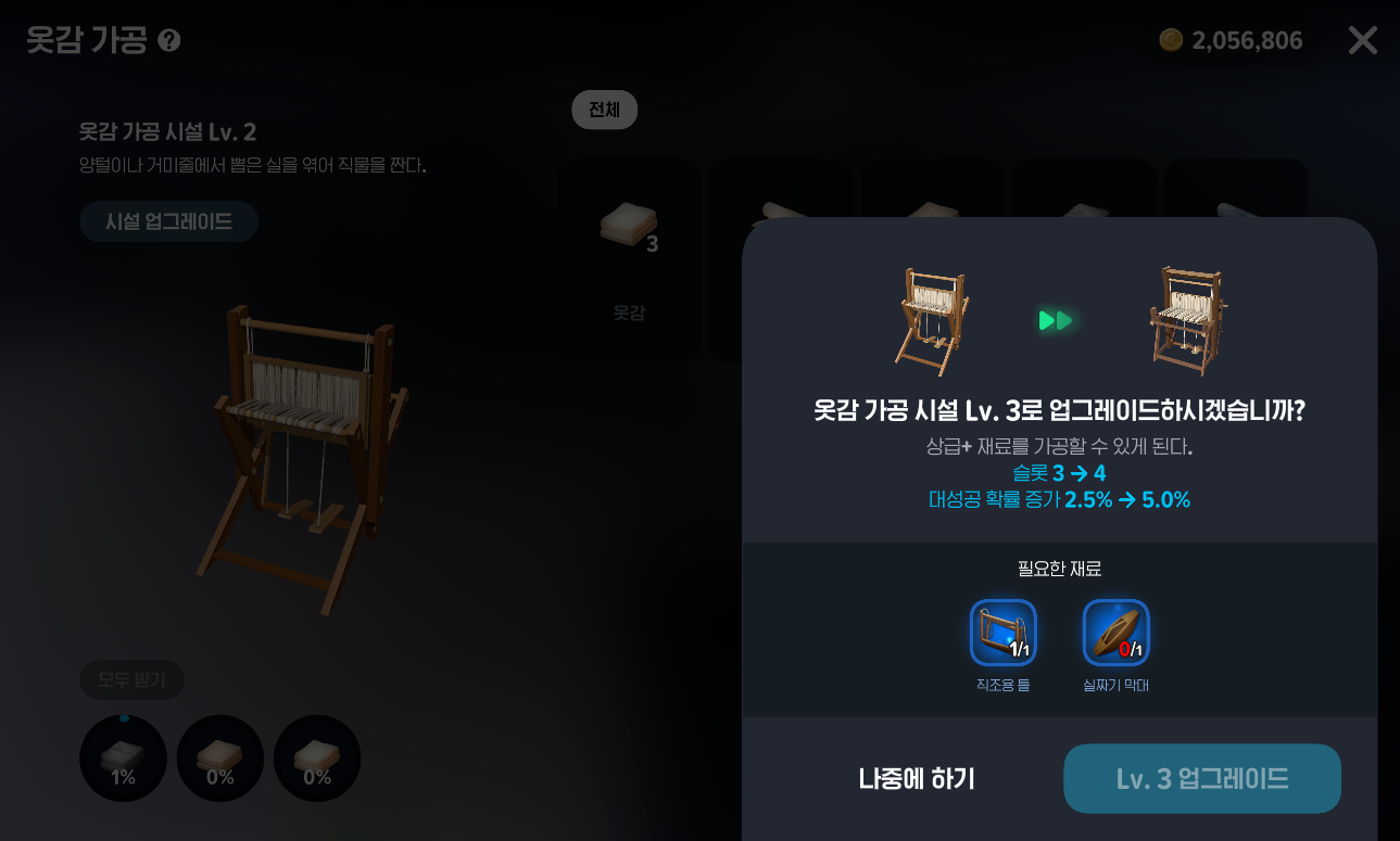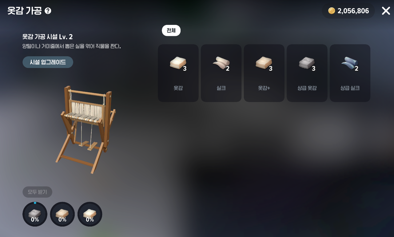 1. 옷감 가공 시설 2 -> 3 업그레이드