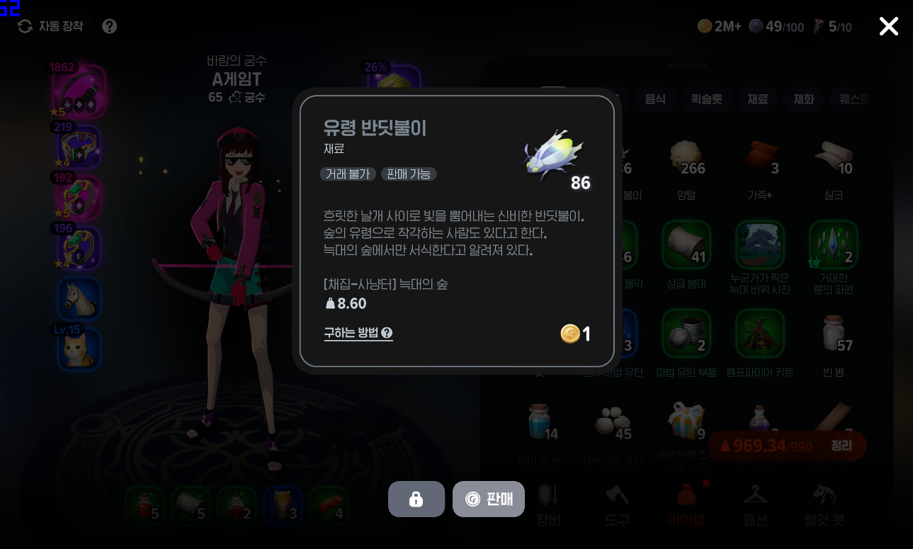 | 옷감 가공 | 던바튼 / 시몬 | 유령반딧불이 2개 | 실짜기 막대 |