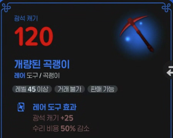 - 🔵 레어 도구: 제작으로만 획득 가능, 효율 가장 우수