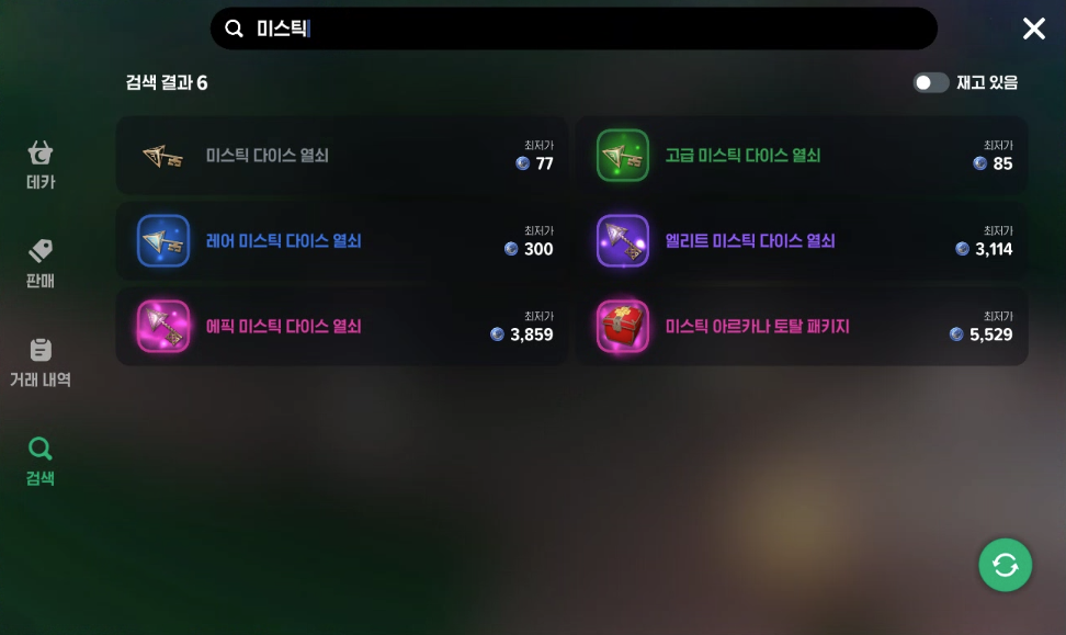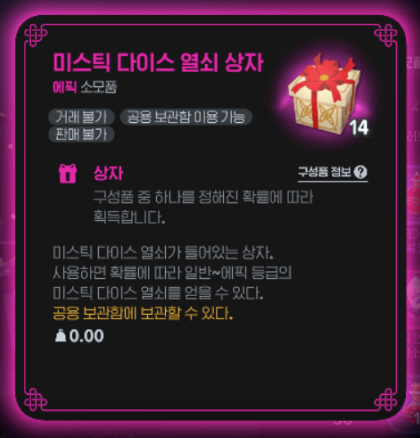 - 미스틱 다이스를 열려면 다이스키가 필수