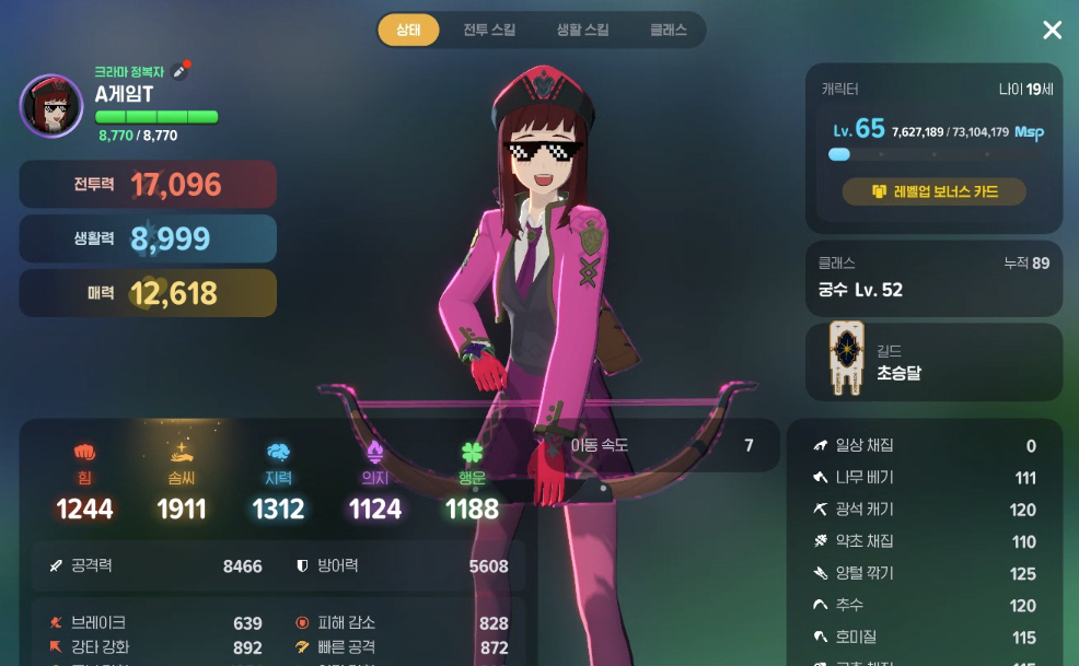 - 생활형 캐릭터 → 채집 숙련도, 무게 증가 등 중심