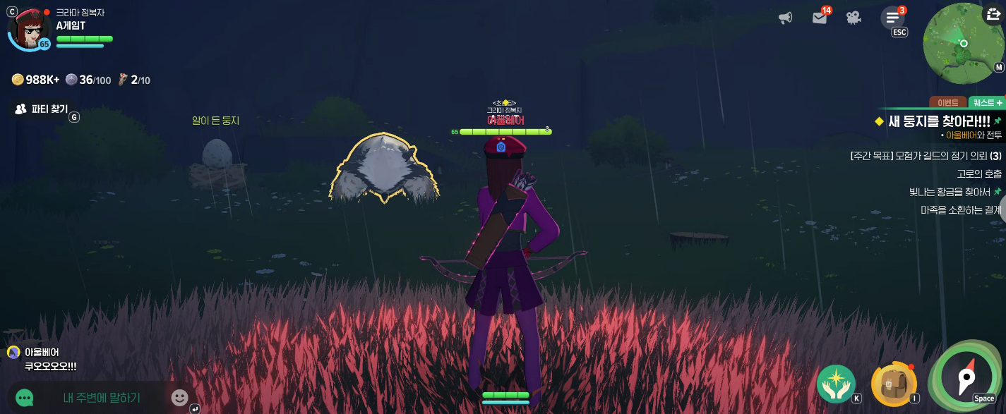 - 보스급 몬스터인 아울베어 처치 후, 둥지를 클릭해 알 획득