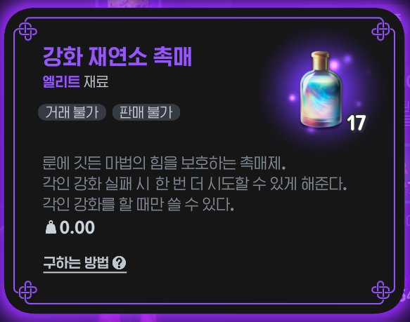 이 아이템은 에픽 룬 강화를 다시 시도할 수 있게 도와주는 귀한 재화예요.