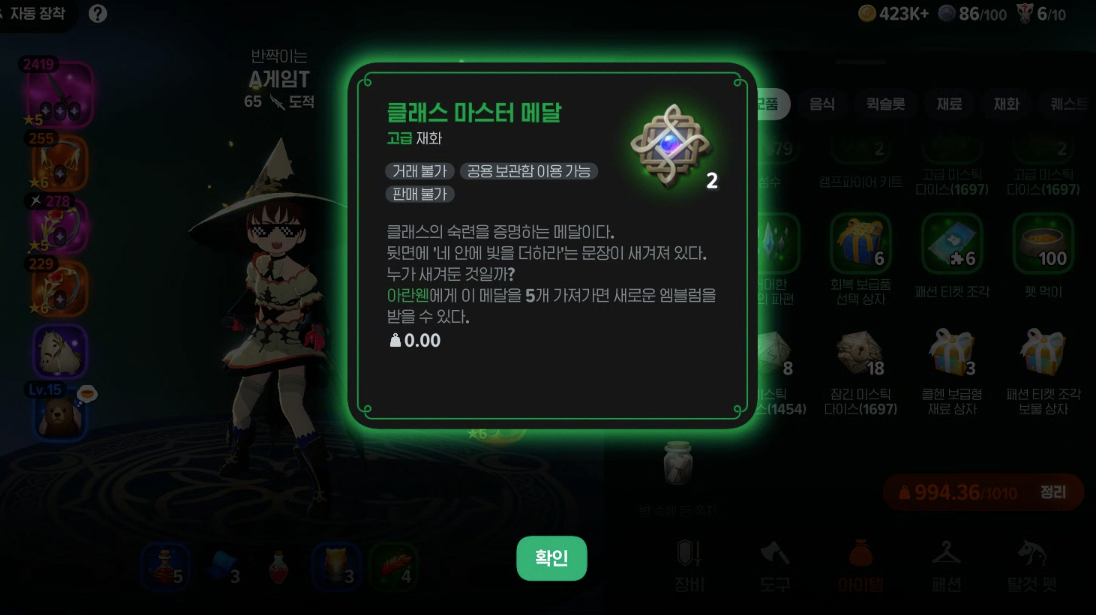 NPC 아란웬(던바튼 학교) 상점에서 클래스 마스터 메달로 구매 가능.