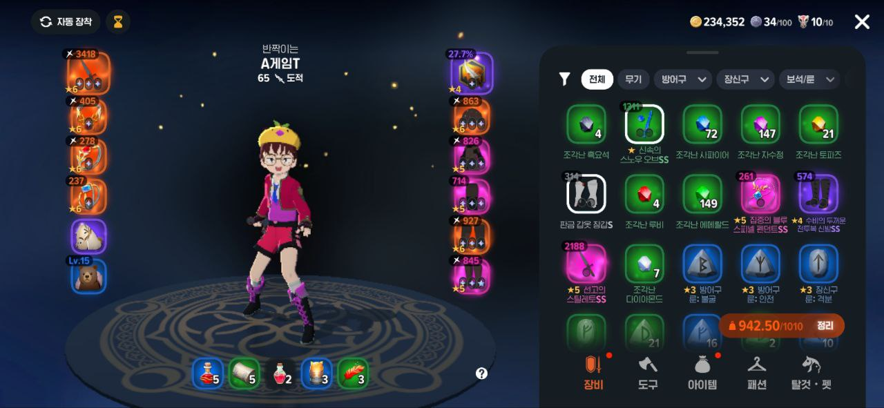 - 부캐릭터로 어비스 던전을 클리어해 화석 수집