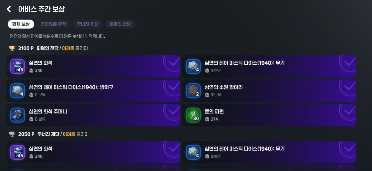 ➡️ 한 주에 최대 15개의 심연의 화석을 확보할 수 있는 셈이죠.