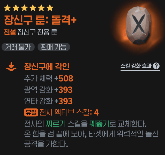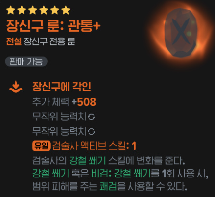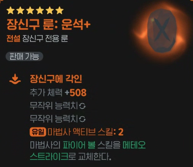 장신구 룬은 스킬의 성능을 강화하거나 새로운 효과를 부여하여 전투 효율에 큰 영향을 줍니다.