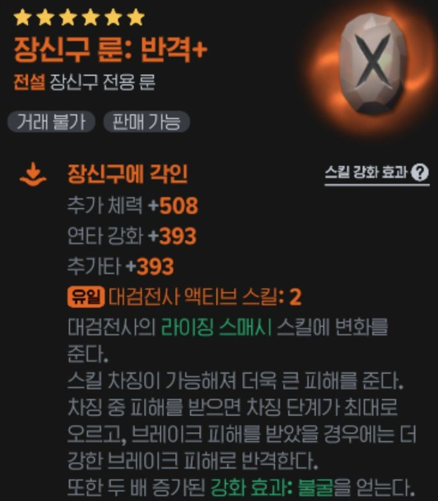 - 추천 룬 : 반격(2), 탄력(4), 회심(5)