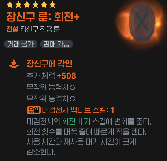 - 필수 룬 : 회전(1)