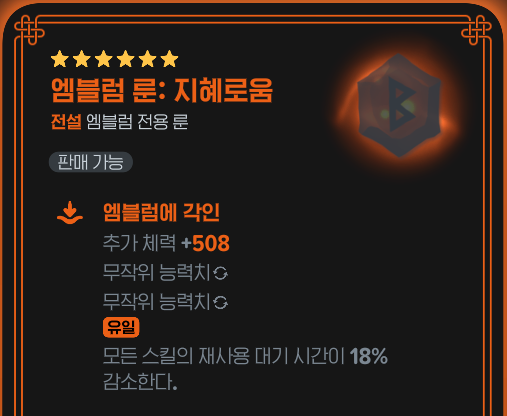 - 🧠 지혜로움: 스킬 쿨타임 18% 감소 → 딜싸이클 수정 고려 필요