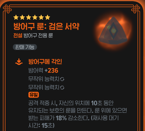 - 검은 서약: 피해 감소 룬 생성, 룬 위에서 피해 18% 감소