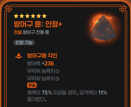 - 안정: 체력 75% 이상일 때 피해량 11% 증가