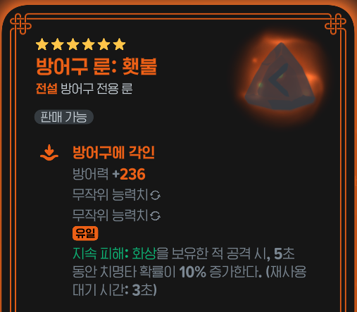 - 횃불: 화상 상태 적 대상 시 치명타 확률 증가