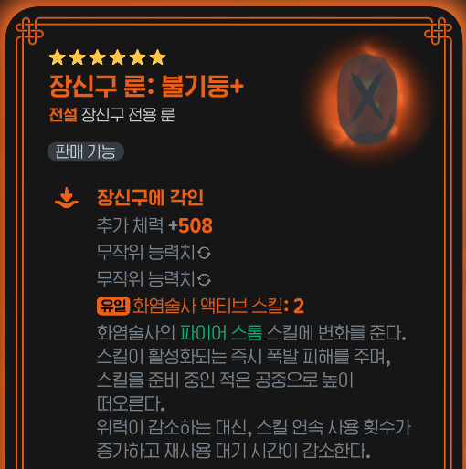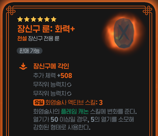 화염술사는 장신구에 부여하는 스킬 전용 룬의 영향이 매우 큽니다.
