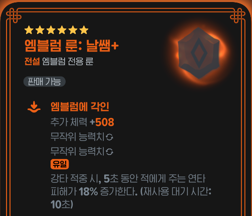 - 🌀 날쌤: 강타 적중 시, 연타 데미지 18% 상승 (5초 지속)
