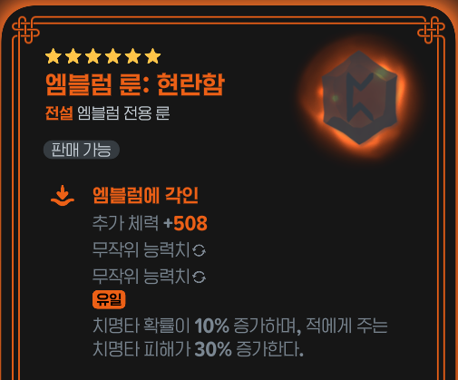 - 🎯 현란함: 치명타 확률 +10%, 치명 피해량 +30%