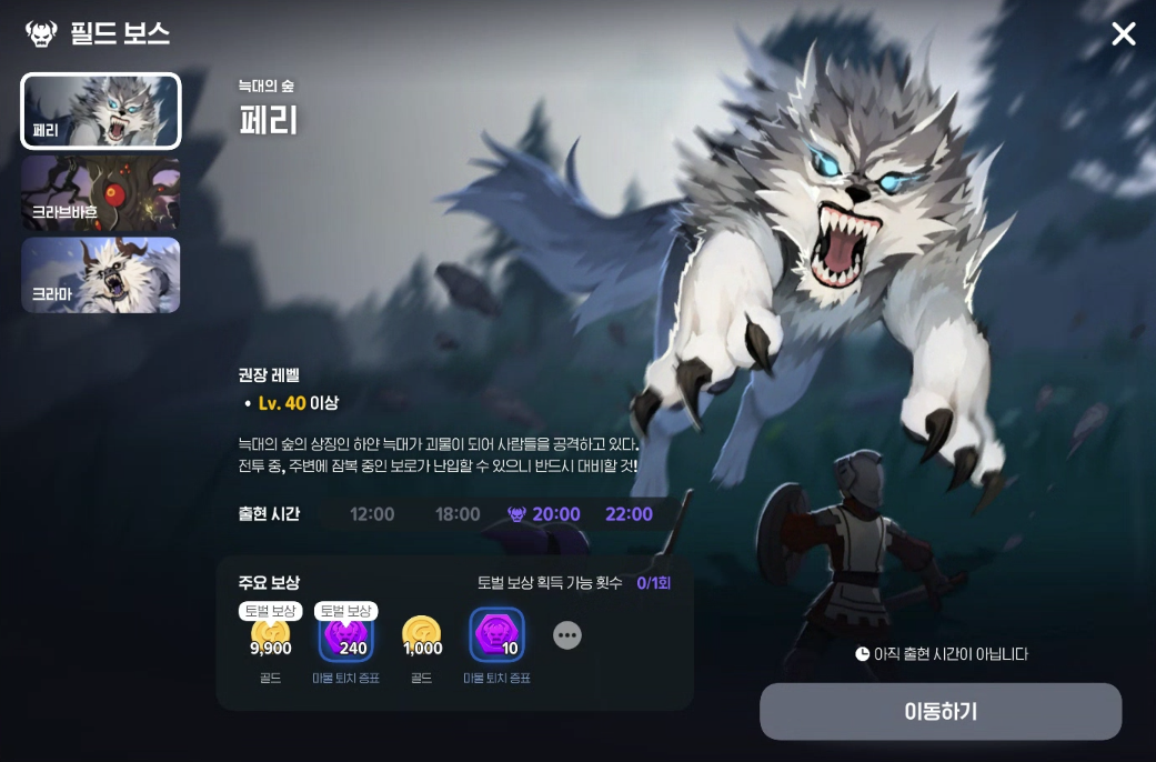 7. 필드보스 참여 (페리, 크라브바흐, 크라마)