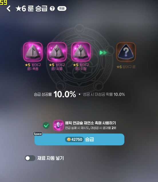 여유 있는 룬은 승급 시도를 통해 빠르게 전설화에 도전해볼 수 있습니다.