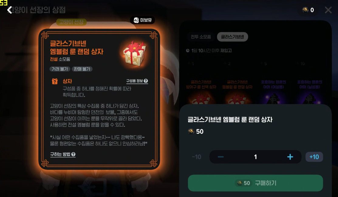 - 글라스기브넨 전용 룬 상자 및 엠블럼 상자