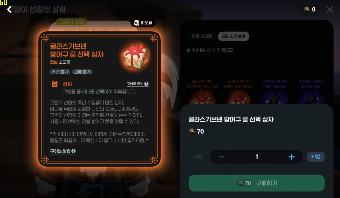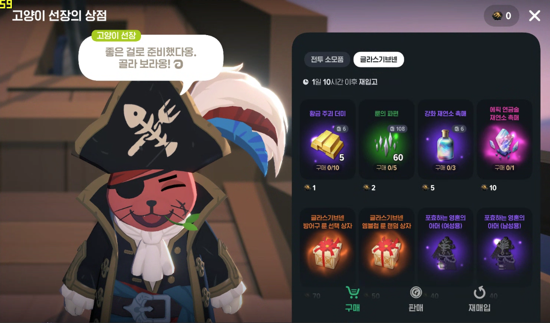 원정의 증거를 재화로 사용하는 글라스기브넨 전용 상점이 시작의 갑판 고양이 선장 NPC에게서 오픈됩니다.